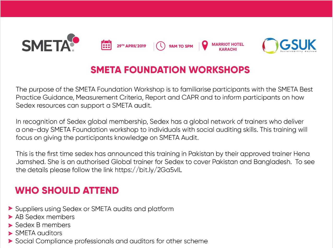 SMETA Foundation Workshop – 29thApril 2019
